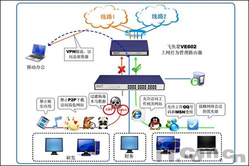 針對以上用戶(hù)的共性需求,在成熟可靠的防火墻寬帶路由器的架構上,飛魚(yú)星科技推出了一款專(zhuān)為30臺以?xún)纫幠5闹行∑髽I(yè)量身定制的上網(wǎng)行為管理路由器——VE602,它具備“上網(wǎng)行為管理”、“多WAN路由器”以及VPN網(wǎng)關(guān)等多重功能的新一代硬件網(wǎng)絡(luò )接入設備,具有企業(yè)常用的上網(wǎng)行為管理、多WAN接入、流量控制、VPN等功能。該款設備需吸引人的地方是其價(jià)格,僅398元,完全是SOHO級路由器的價(jià)格,不僅提高辦公效率還可為企業(yè)節約一大筆開(kāi)支,為中小企業(yè)提供極具性?xún)r(jià)比的一體化整體解決方案。