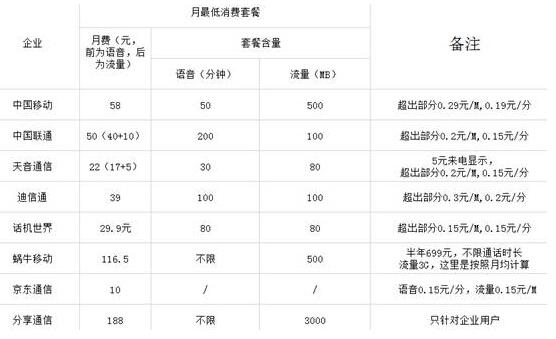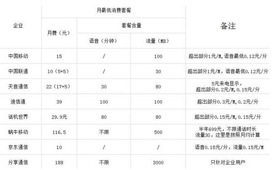 虛擬運營(yíng)商資費對比:門(mén)檻兩極分化 優(yōu)惠不如預期