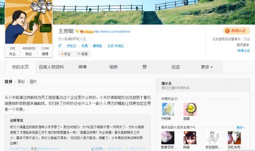 國民老公王思聰微博公開(kāi)黑小米:抄襲都能抄出優(yōu)越感