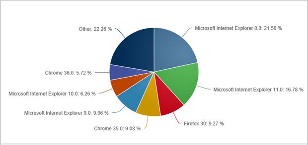 上圖為2014年7月全球瀏覽器市場(chǎng)份額(來(lái)自NetMarketShare.com的數據)
