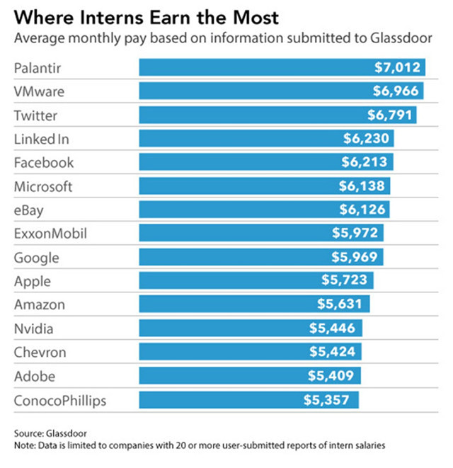 硅谷實(shí)習生月薪曝光:Facebook 6213美元,蘋(píng)果9223美元