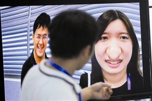 昨日,會(huì )展中心,智能人臉識別屏幕帶來(lái)無(wú)限樂(lè )趣。深圳商報記者 肖兵峰攝