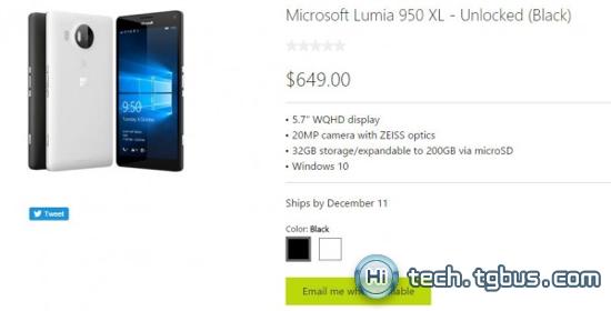 上周在官方在線(xiàn)商城開(kāi)啟了兩次預訂工作之后,今天早些時(shí)候微軟在美國地區正式發(fā)售Lumia 950 XL,在上線(xiàn)數小時(shí)之后這款旗艦機型宣布售罄。目前感興趣的用戶(hù)可以預留郵件地址,一旦到貨上線(xiàn)將會(huì )及時(shí)通知你。根據信息顯示所有Lumia 950 XL的訂單將于12月11日開(kāi)始發(fā)貨,而根據此前曝光的信息首批預訂用戶(hù)已經(jīng)開(kāi)始發(fā)貨了。
