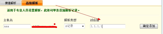 AAA就是他的2級域名 做下對應值 解析 例如 1.1.1.1